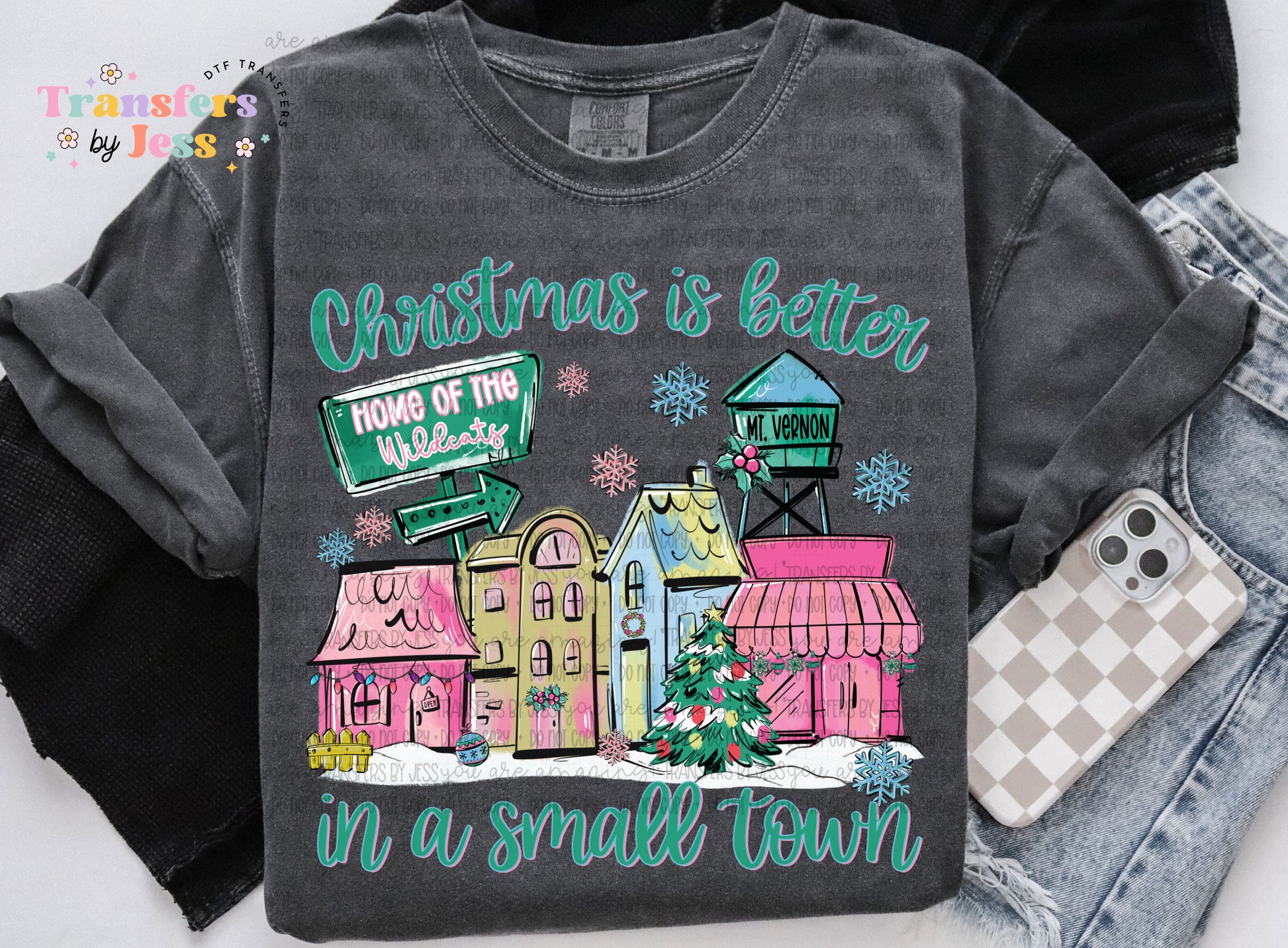 Christmas Is Better In A Small Town pink and green Custom DTF Transfer